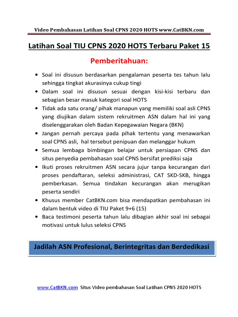 Soal Tiu Cpns 2019 Dan Kunci Jawaban - Kumpulan Contoh ... from contoh-surat.co Check spelling or type a new query. Maybe you would like to learn more about one of these? We did not find results for: Soal twk hots cpns 2020 pdf.